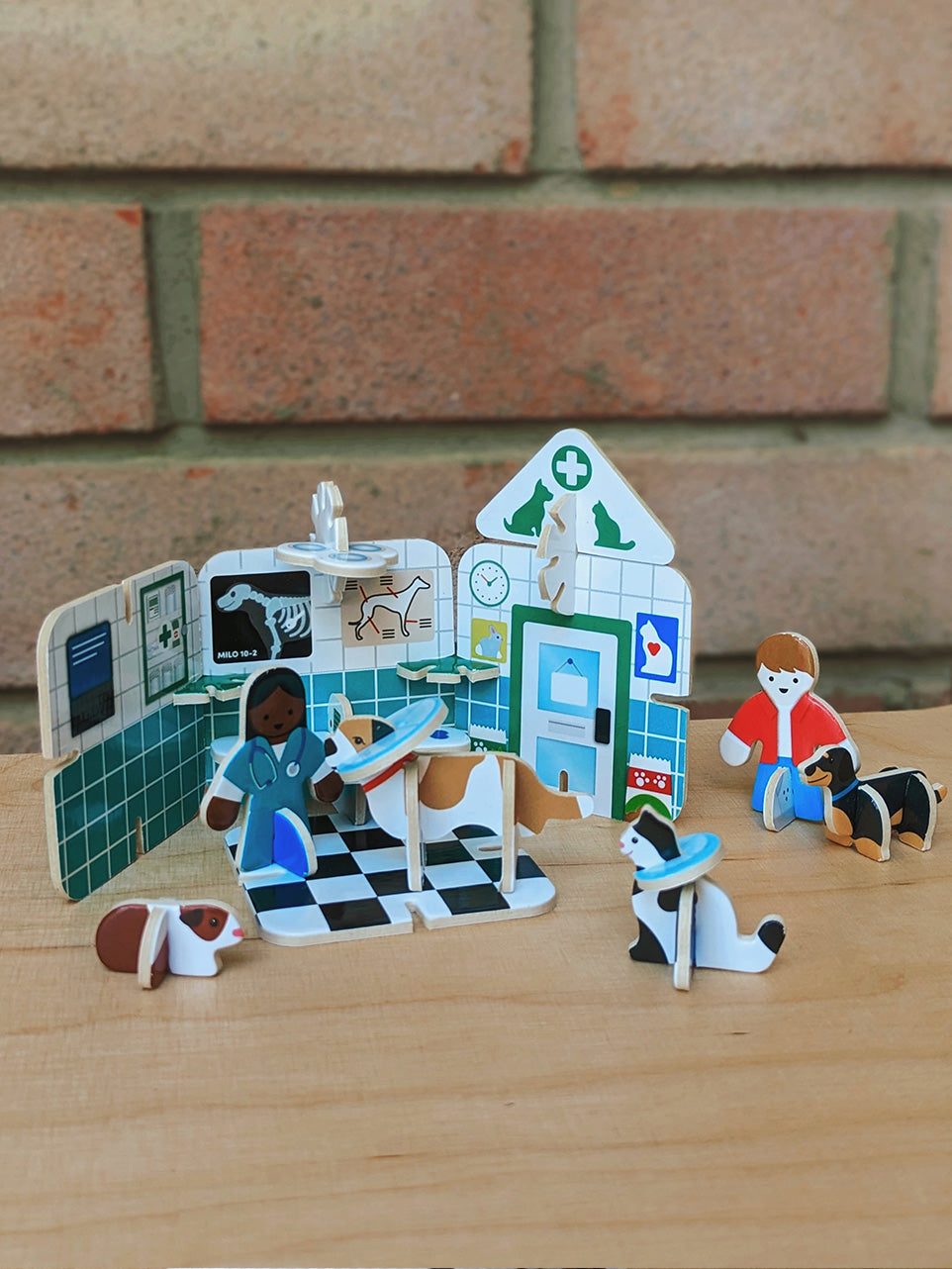 This play set includes everything your child needs to build their own mini vets surgery. With a variety of animals and medical equipment it's perfect for little ones to role play taking care of pets. Easy to assemble and disassemble so kids can enjoy endless hours of imaginative play and learning. Made from sustainably sourced, FSC certified playboard.