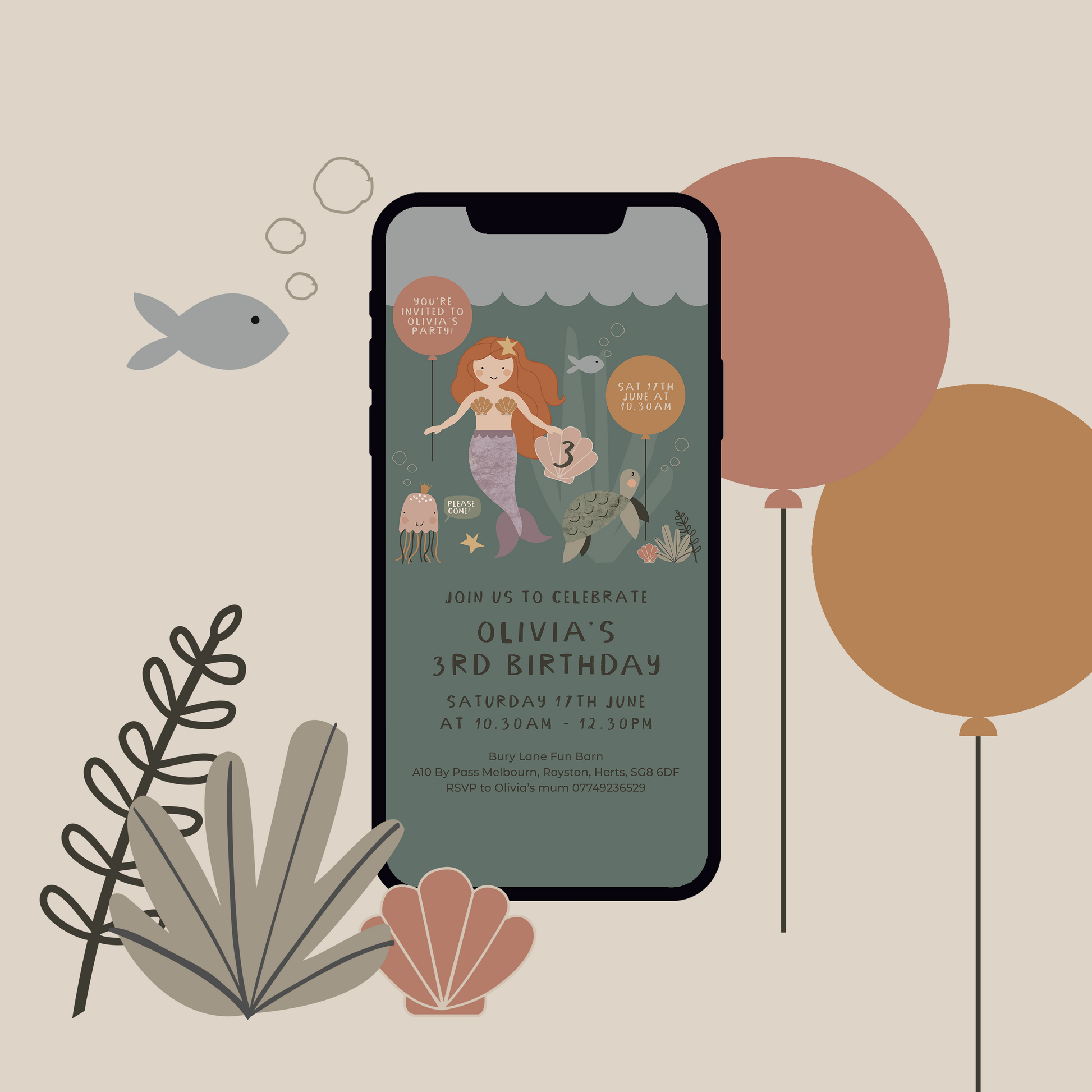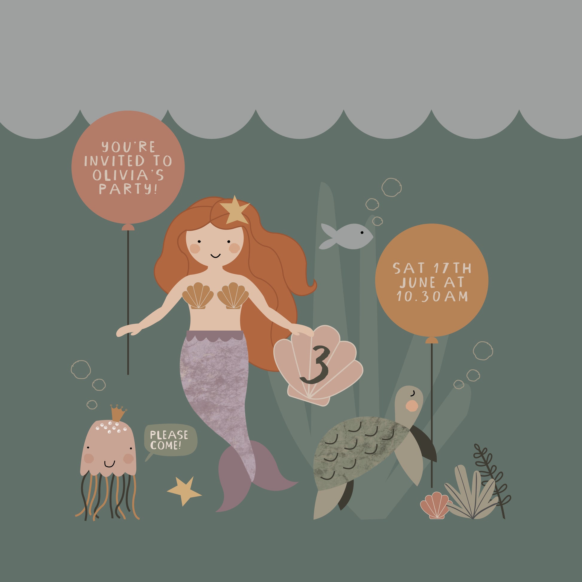 Personalise your little ones birthday party invite with our digital mermaid invitation. Our under the sea illustrations are ready for a party and can't wait to share the special event details with your family and friends! More designs are available.