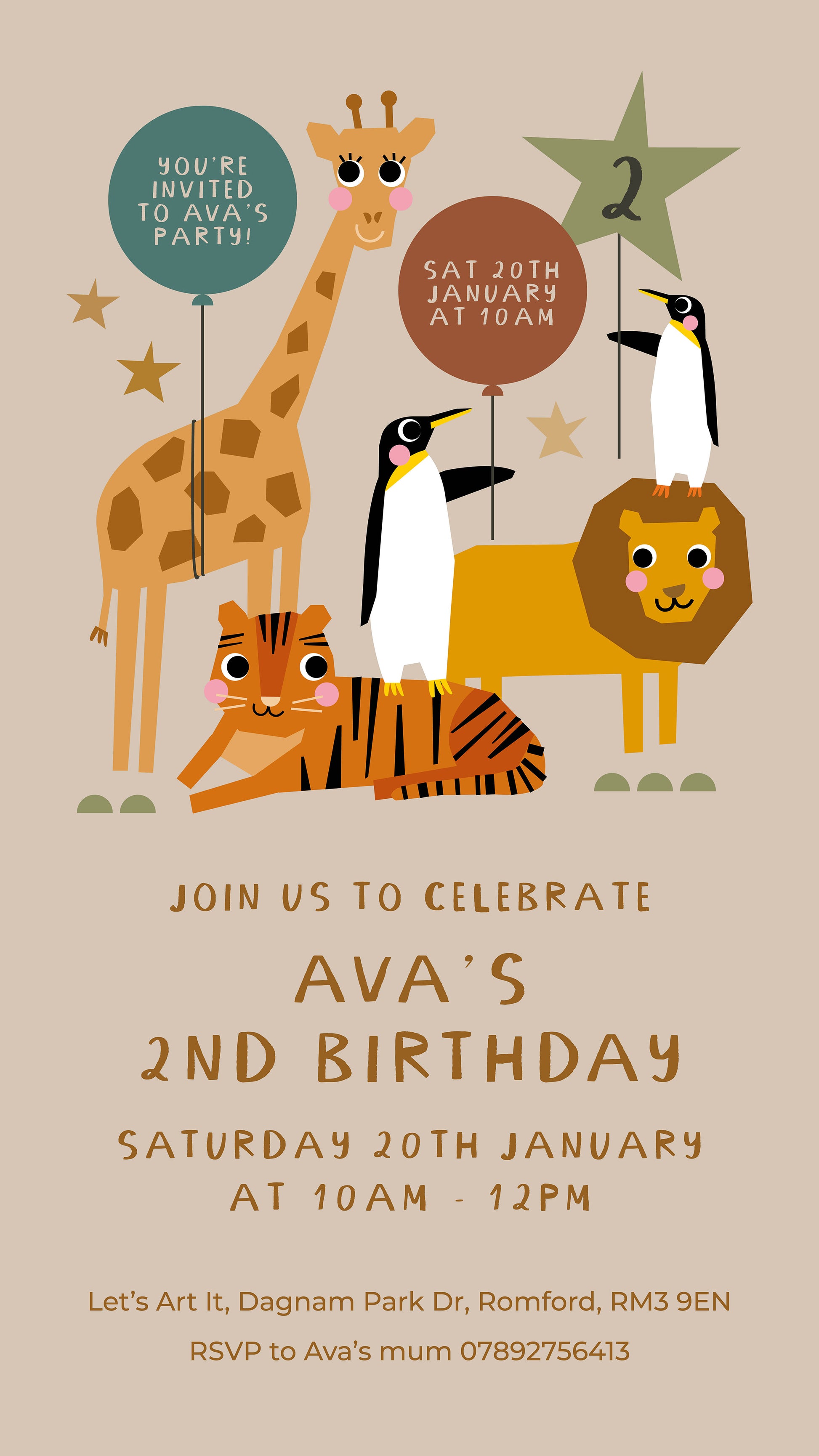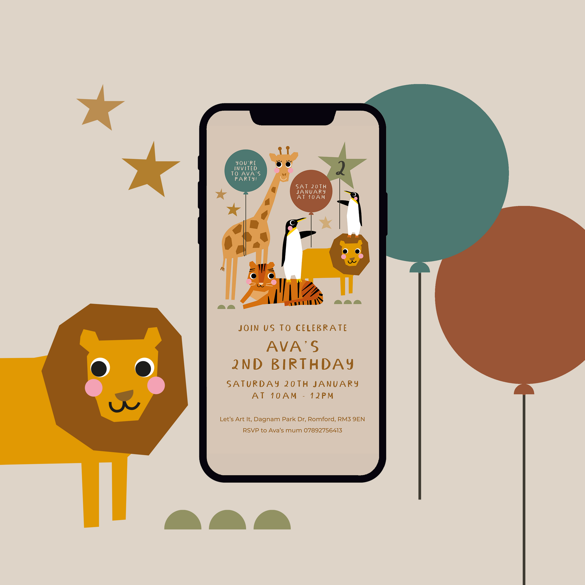 Is your little one animal obsessed? Do they love the zoo or are you planning a safari themed party? Personalise this birthday party invite with your event details to share digitally with your family and friends! More designs are available.