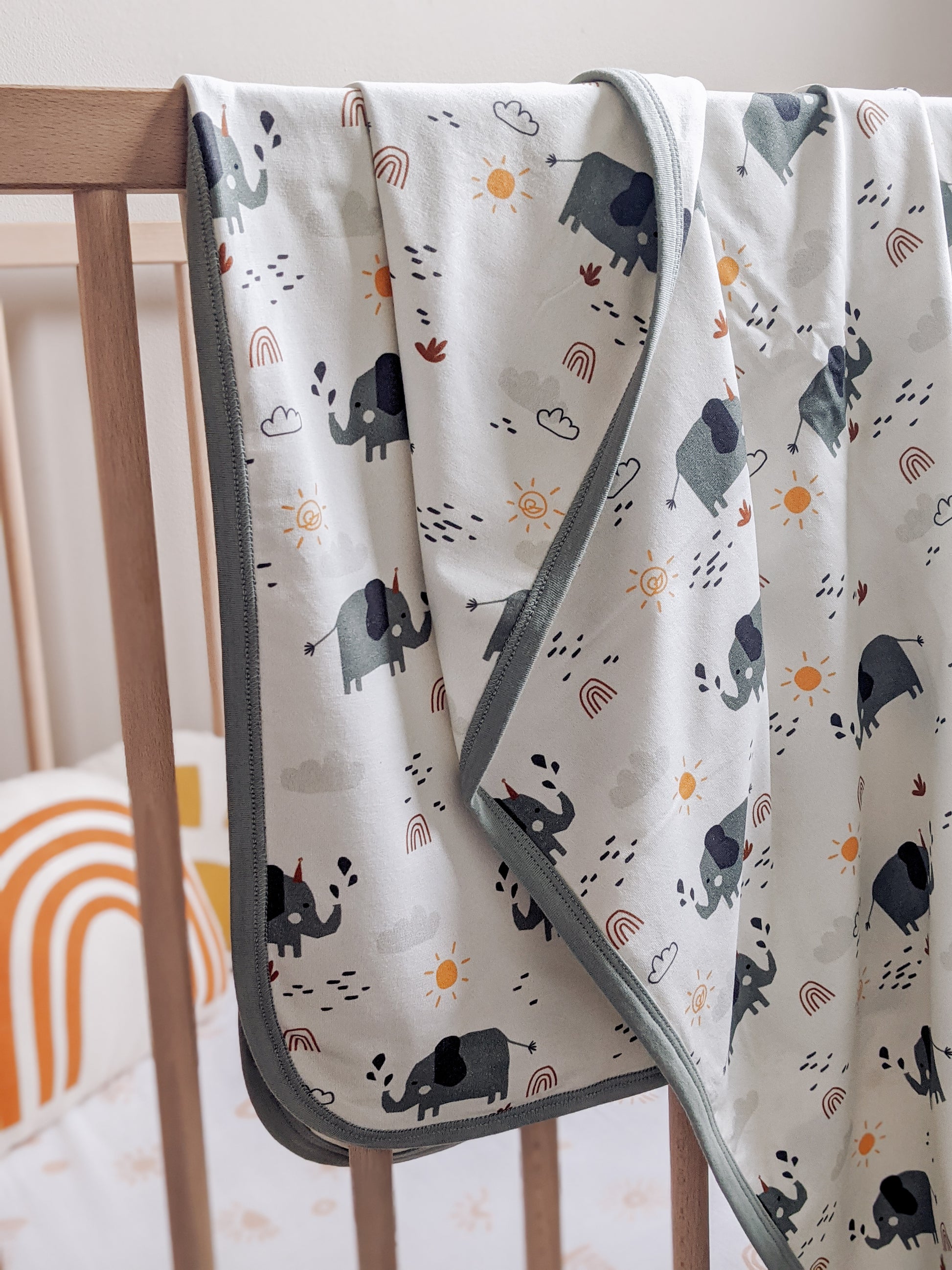 This super soft, reversible, organic cotton baby blanket makes a perfect eco-friendly baby shower gift.