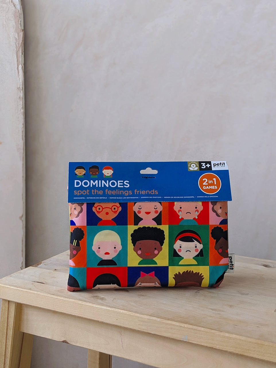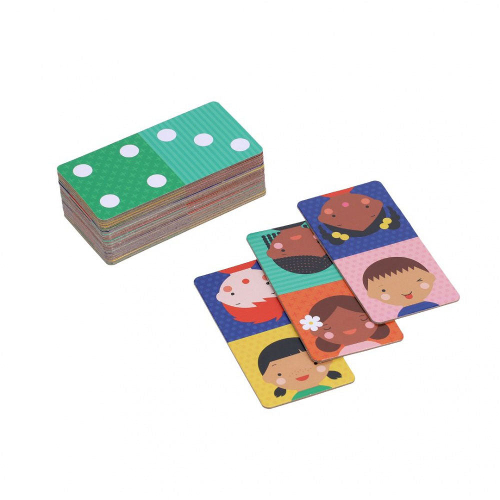 This 2-in-1 game encourages the development of emotional intelligence skills with the other side of the dominoes featuring traditional dots to build number skills! The picture card dominoes are made from 80% recycled paper and come in a travel-friendly pouch made from recycled polyester.