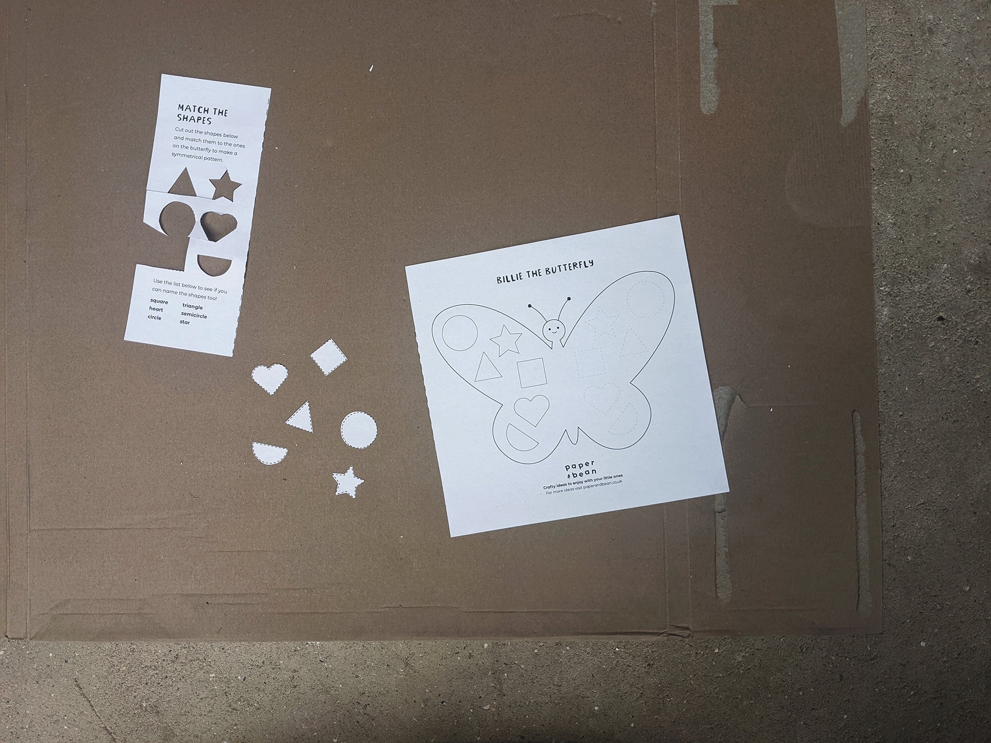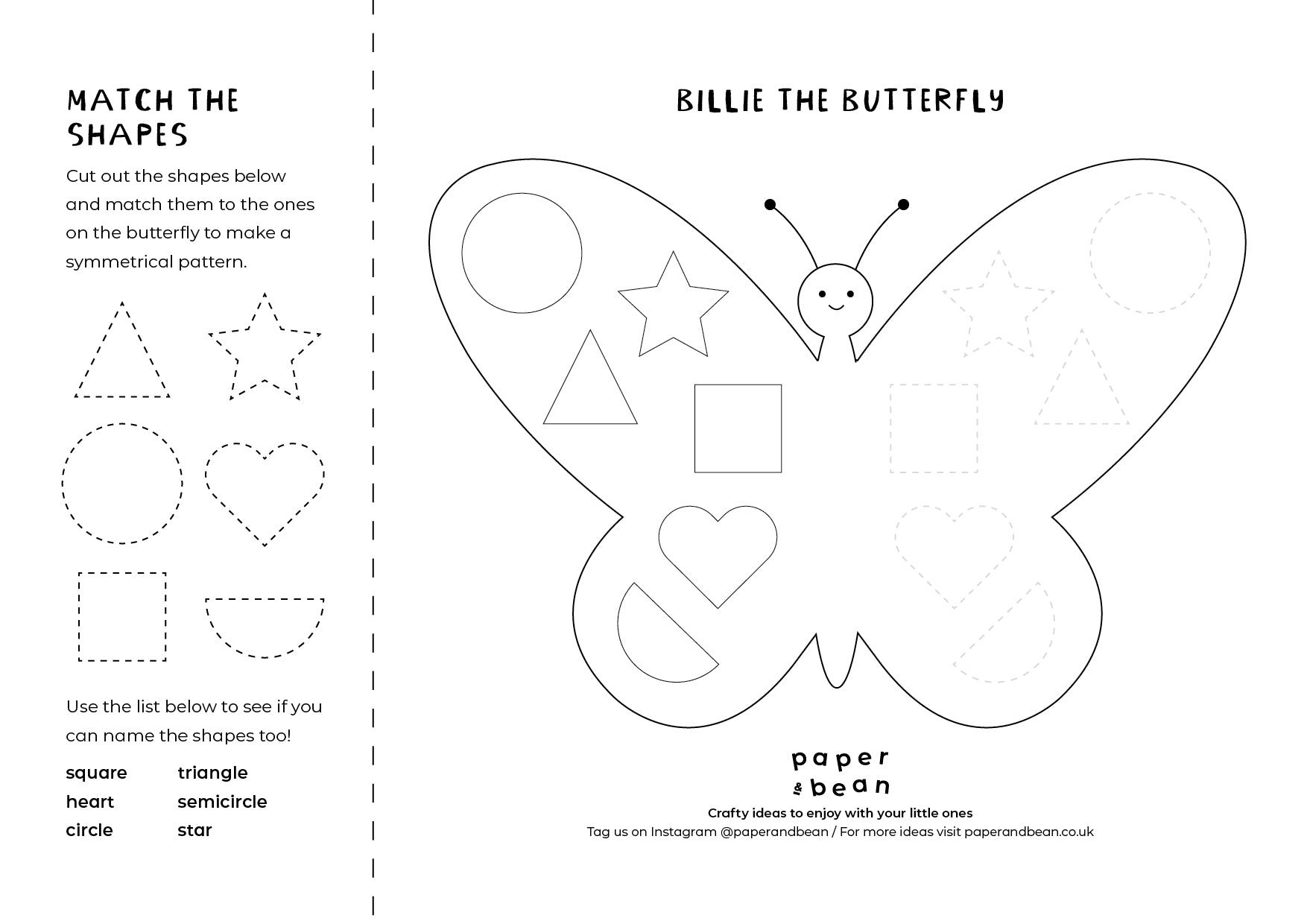 Cut out the shapes and match them to the ones on Billie the Butterfly to make a symmetrical pattern. See if you can name the shapes too!