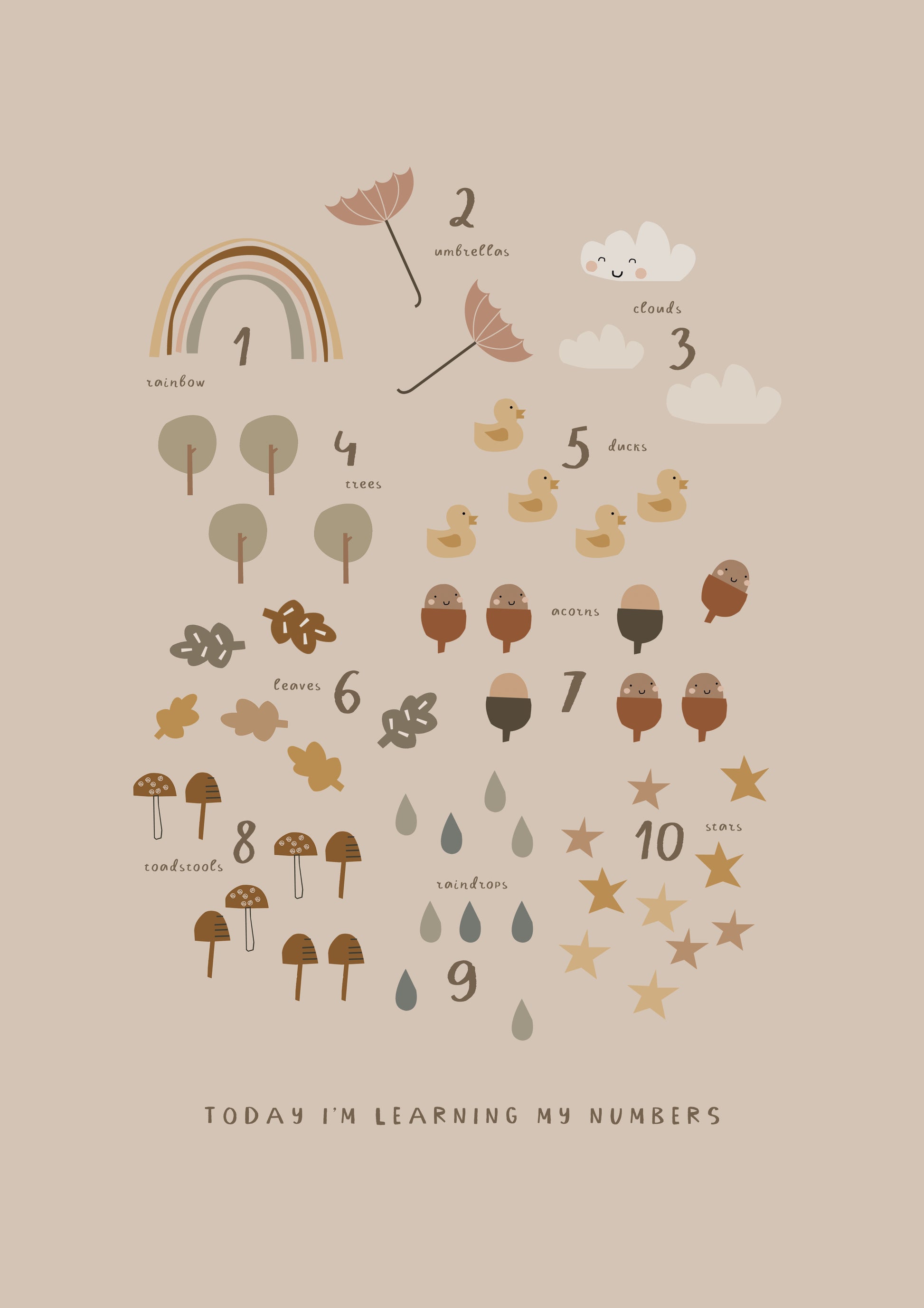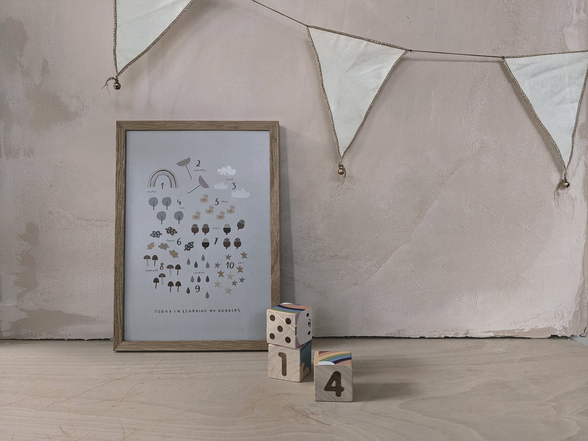 Our playful illustrations make up this cute number print and encourage little ones to learn to count from 1 to 10. An educational poster in a simple, Scandi style perfect for the nursery, kids room or playroom.