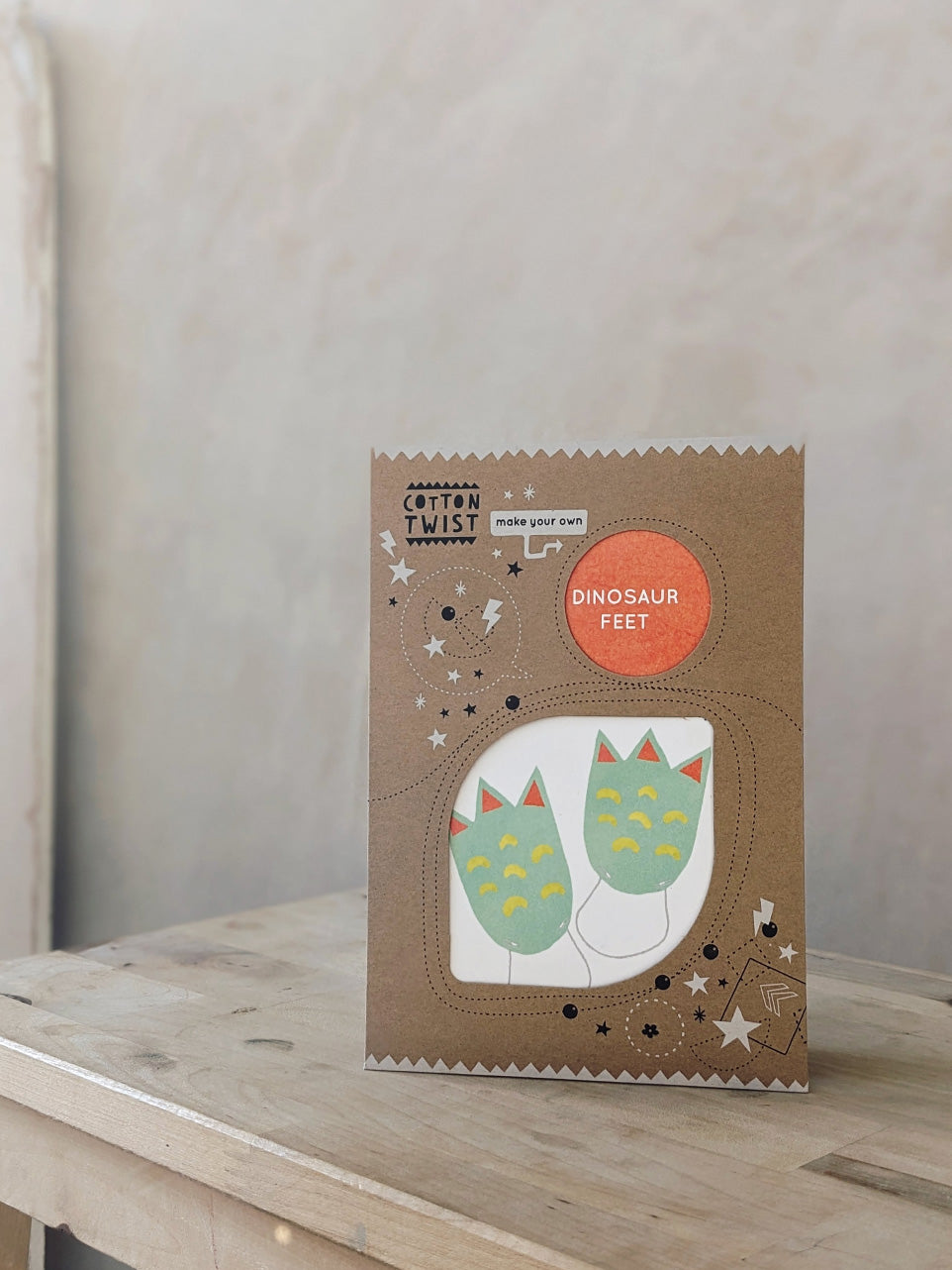 Perfect for three years & upwards, children can adorn the feet cut outs with the gnarly self adhesive felt toe nails, then add scales using the brown watercolour pencil. Attach the elastics, then slip your feet through to become your favourite dinosaur. Watch out, a T-Rex could be en route!