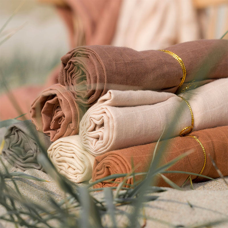 This muslin cloth is super soft and made from the highest quality 100% organic cotton. The soft, earthy colour is created with environmentally-friendly dyes. Muslins are so handy for those newborn days so it makes a really lovely and practical gift for new parents.