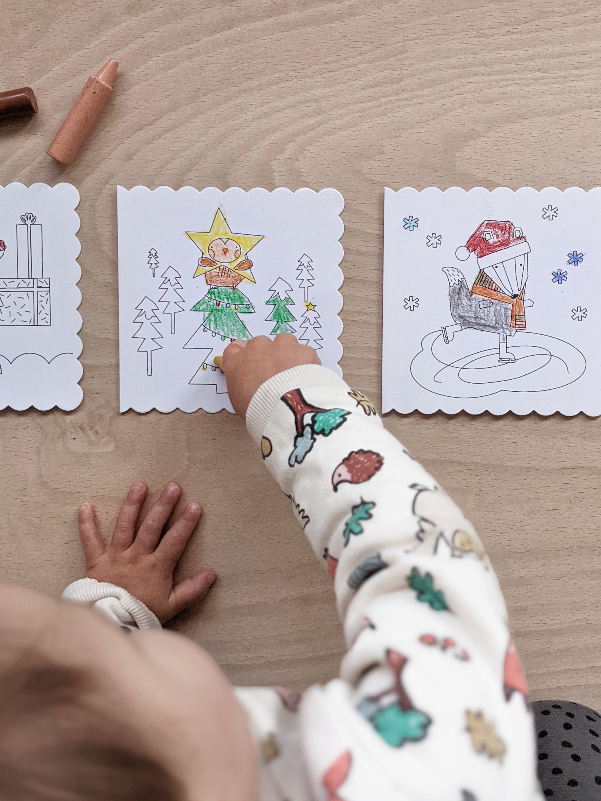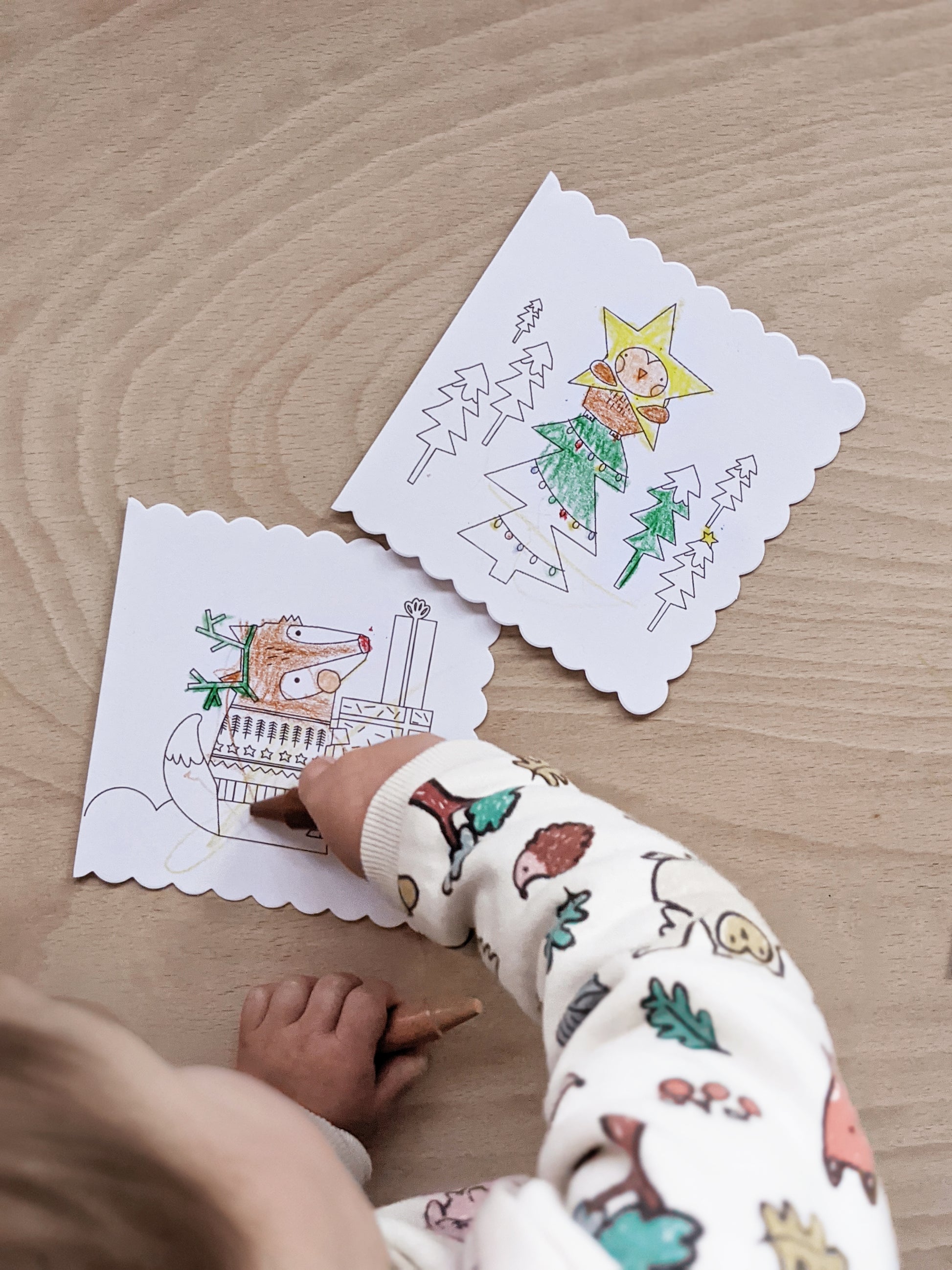 Let your little ones enjoy some festive colouring to make some extra special Christmas cards to give to their grandparents or friends with our set of 3 different designs, printed on scalloped card to make each one even cuter!