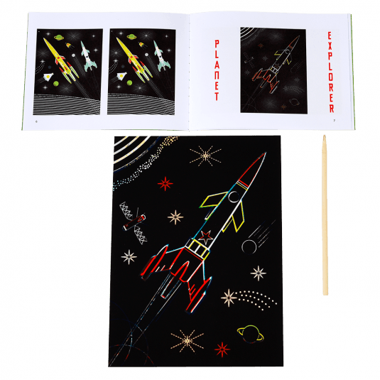 Reveal rockets and scratch stars with this classic Space Age pastime!