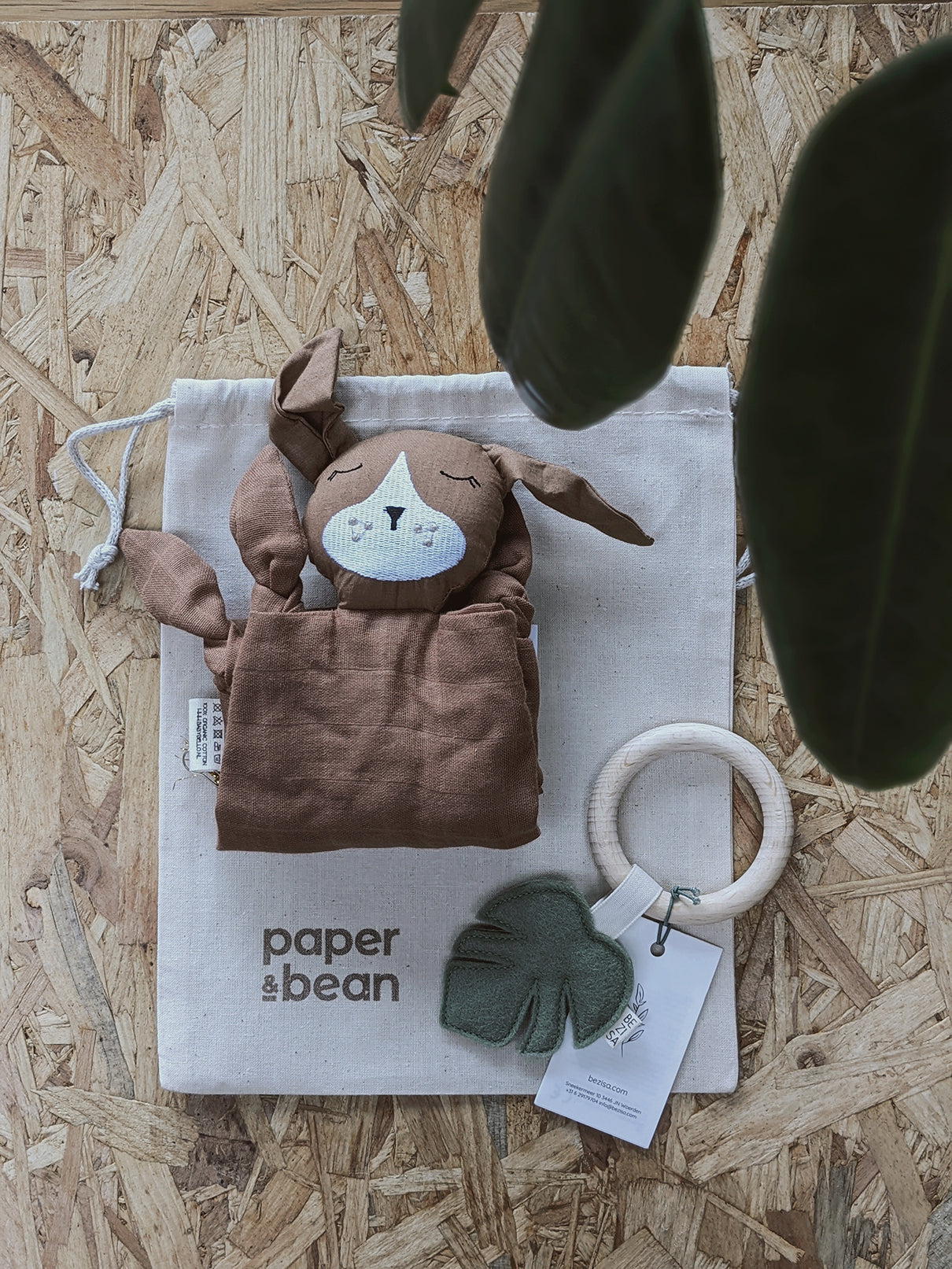 This Sunset teether is filled with crinkle paper on the inside for your baby to explore. The difference in textures of the felt and wood stimulate your baby's motor skills and soothe your teething baby. Can be used as decoration for a minimalist, natural or Scandinavian feel.