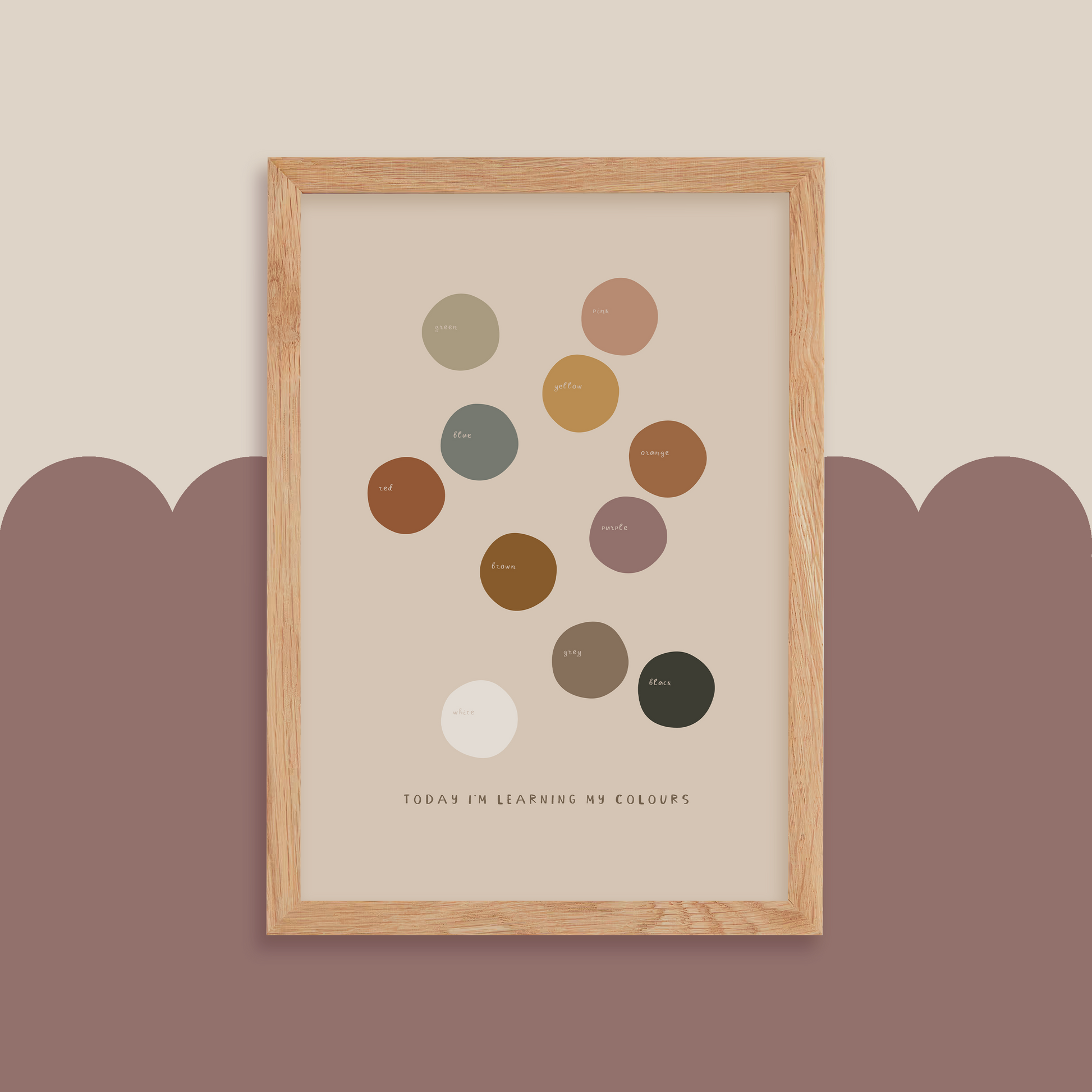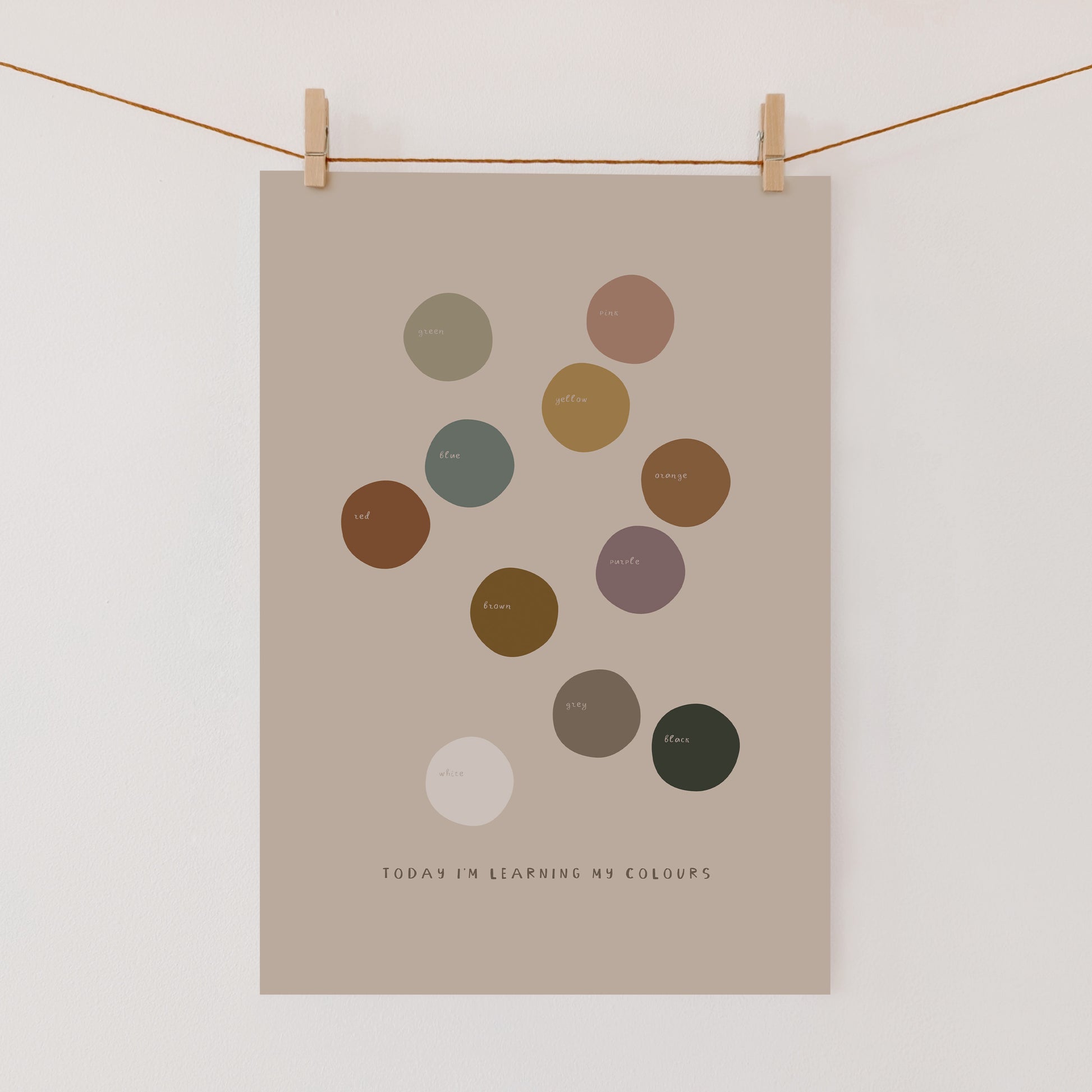 Little ones will learn their colours with our educational nursery print, designed in a simple, Scandi style perfect for the kids room or playroom.