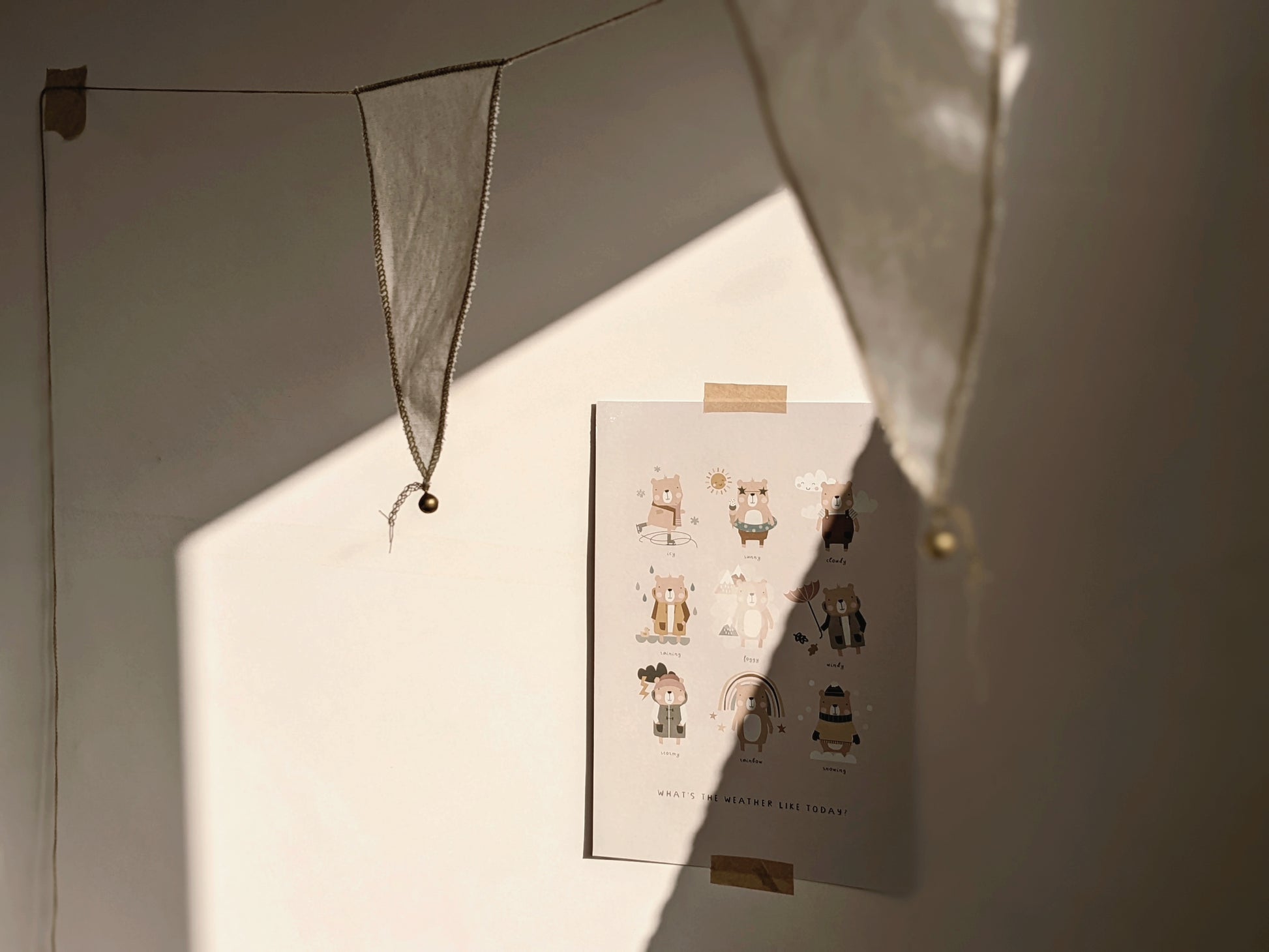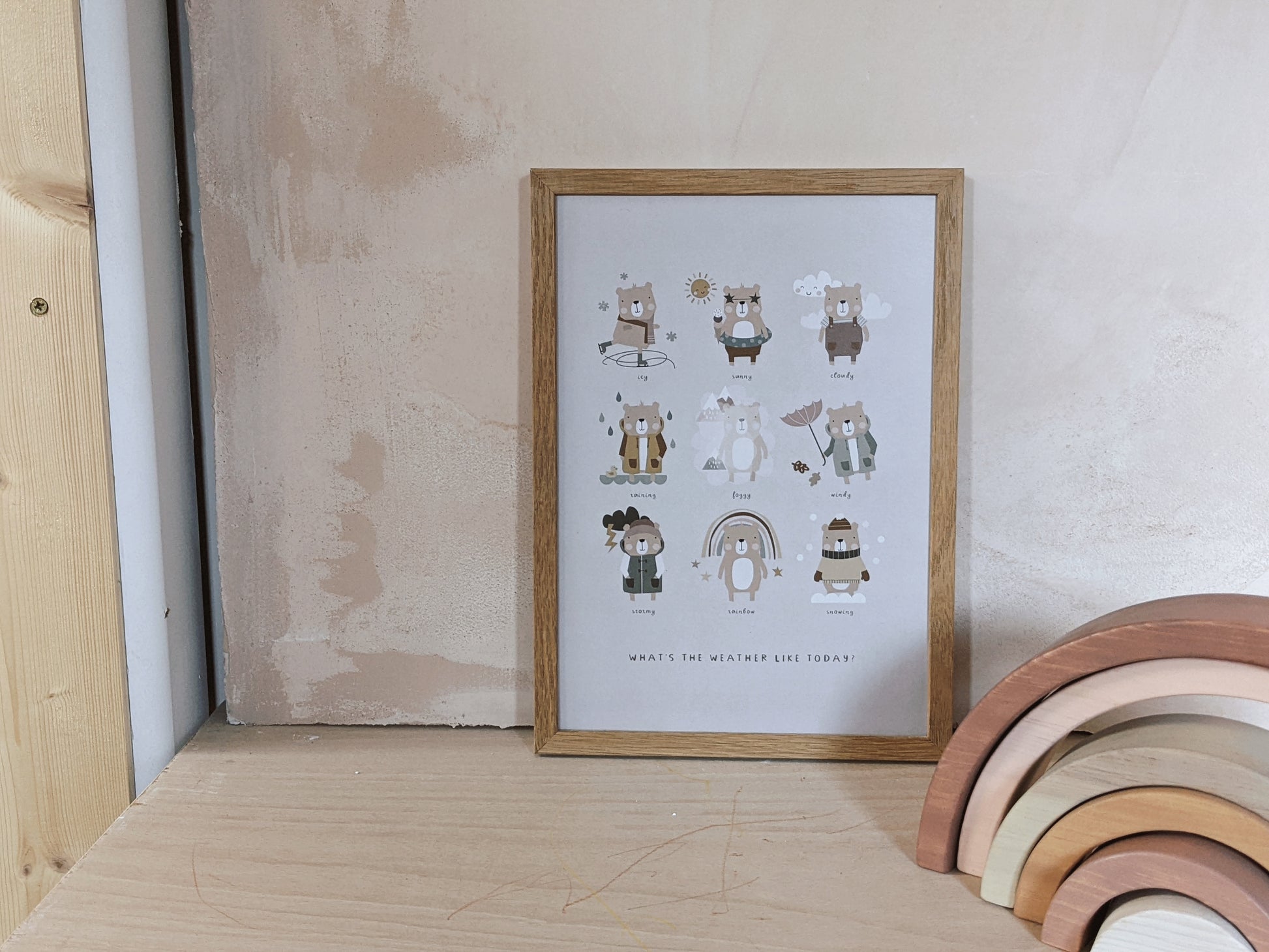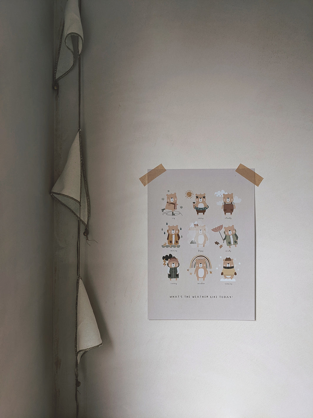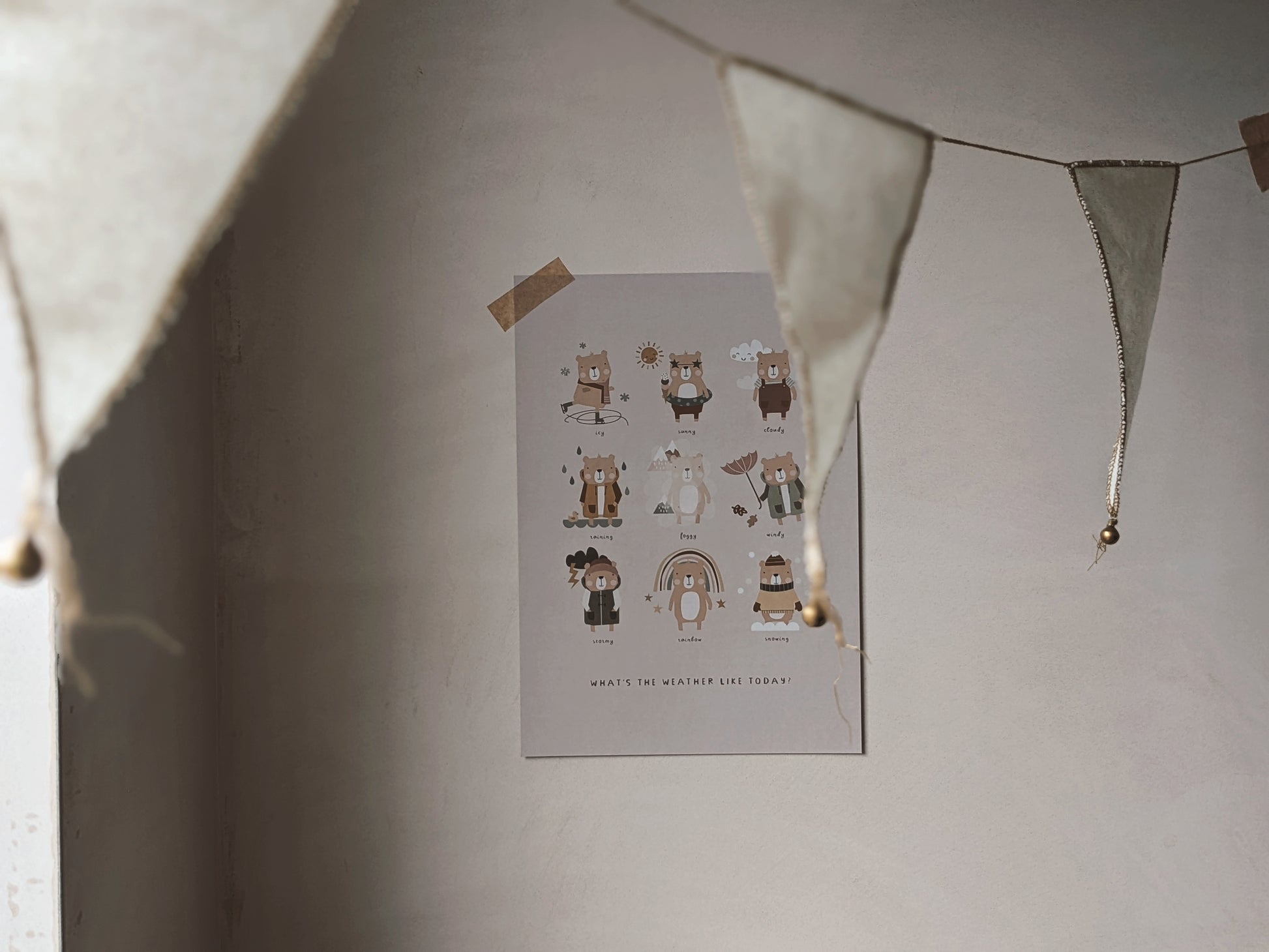 Your little one will learn about the different types of weather with the playful bear illustrations on this educational print. Use as part of your morning routine and ask your little ones to tell you what the weather's like outside! Great for learning about seasonal changes.